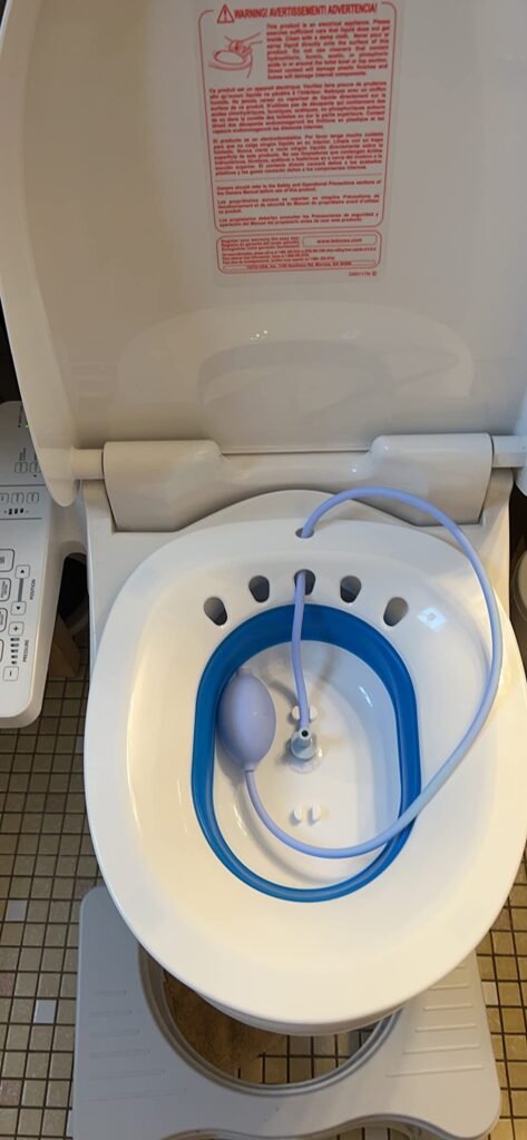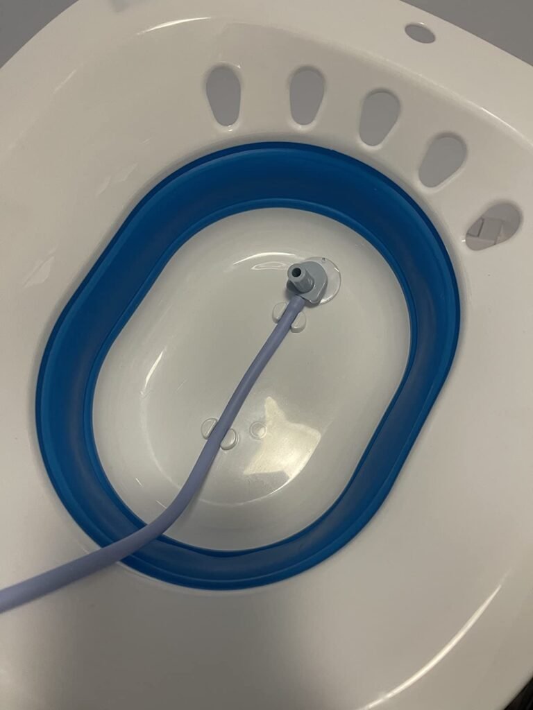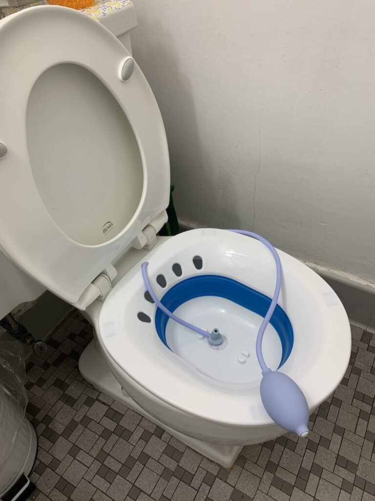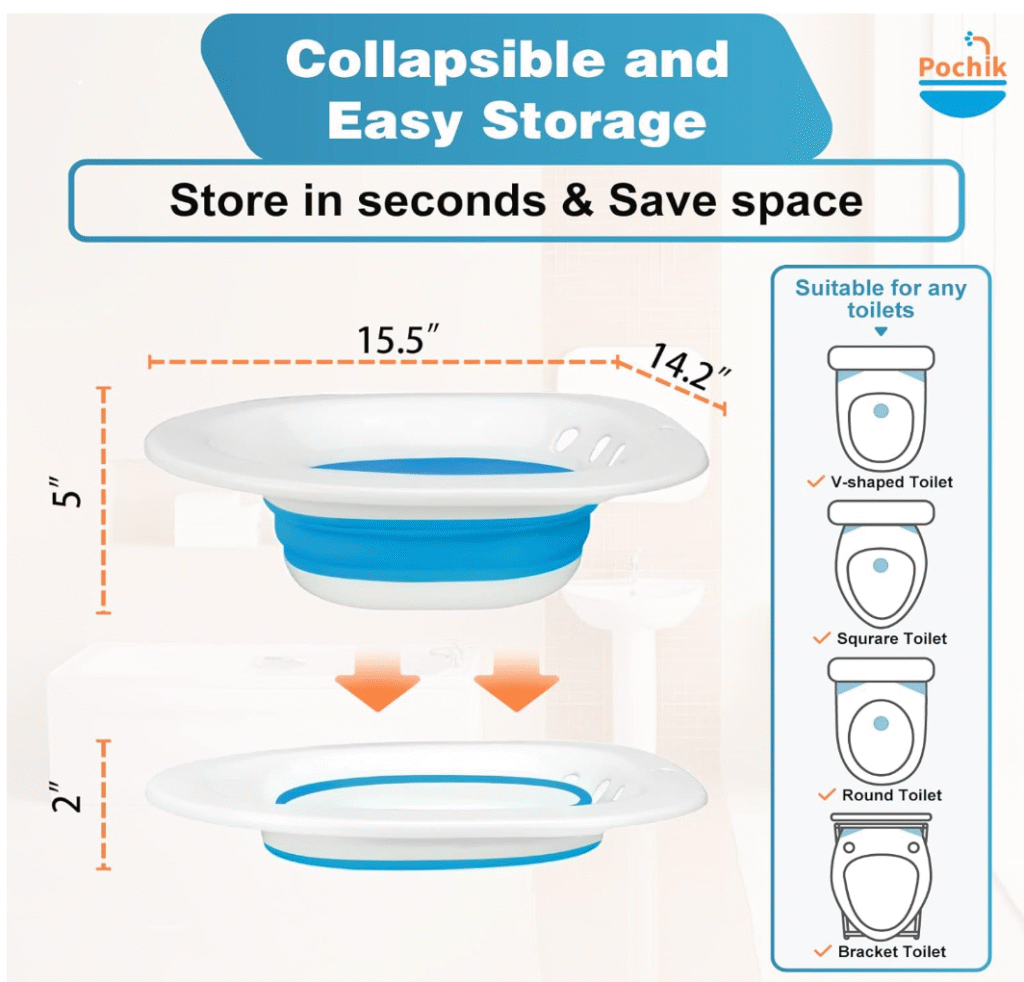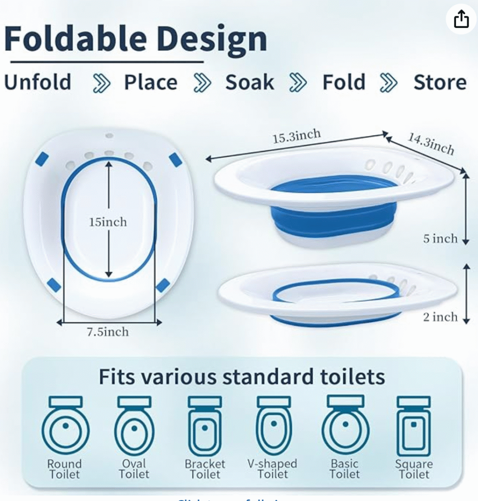 Great quality reasonable price and definitely a good sitz bath that I would recommend all it’s fits perfectly on my toilet as you can see in the picture and easy to store it does condenses it super easy storage and I love that! I am in love with I’m in love with this product